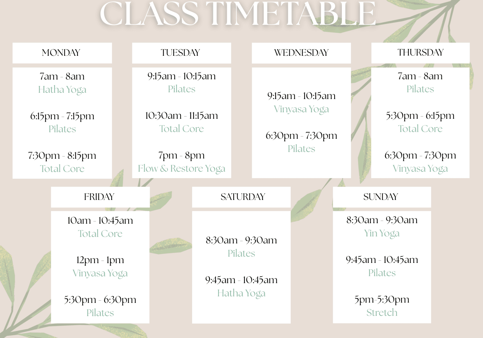 CANOPY YOGA CLASS TIMETABLE